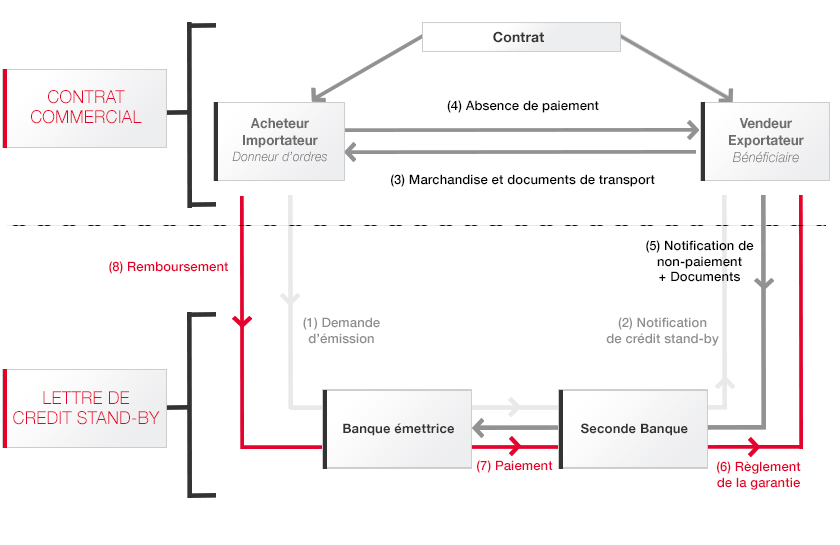 La lettre de crédit stand – by (LCSB) de type commercial garantit les obligations d’un acheteur de payer des marchandises ou des services. Elle consiste en l’engagement irrévocable de votre banque d’indemniser son bénéficiaire lorsque le donneur d’ordre s’avère défaillant. Elle est utilisable contre la remise de certains documents qui peuvent parfois se limiter à la déclaration faite par le créancier que le débiteur ne s’est pas acquitté de ses obligations.